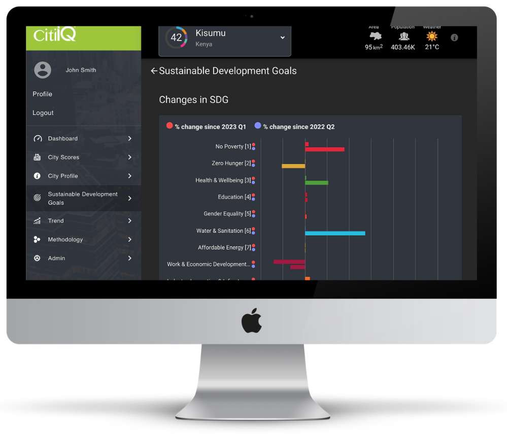 Aligned with the United Nations Sustainable Development Goals, CitiIQ provides a practical way for a city to mark progress toward SDG achievement. Quarterly progress is provided for all 17 SDG’s.